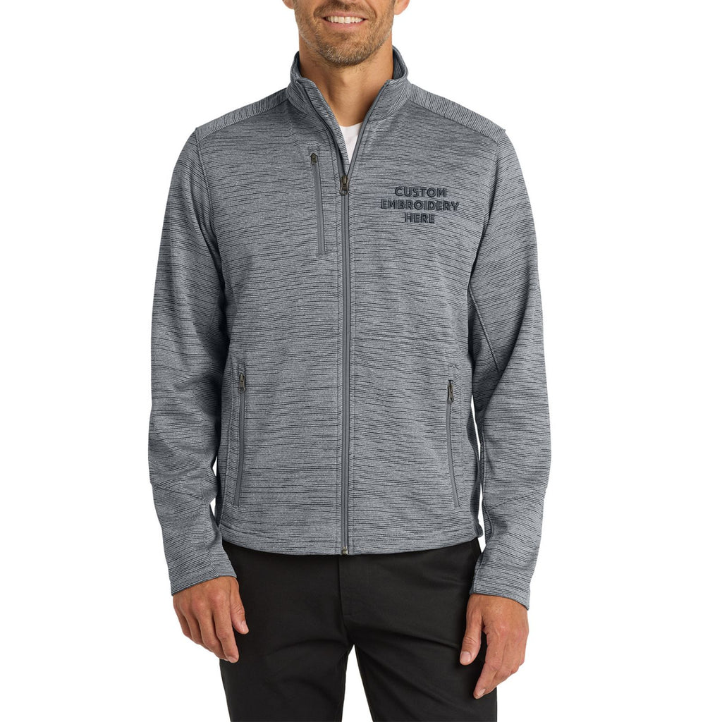 A digital stripe gives this jacket an ultramodern look that can easily transition from a workout essential to a sleek, polished office style.