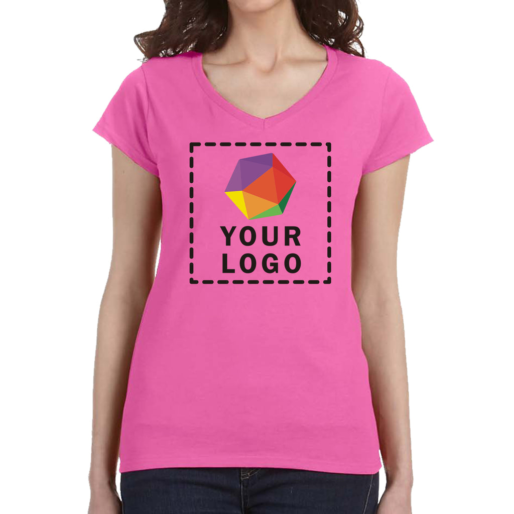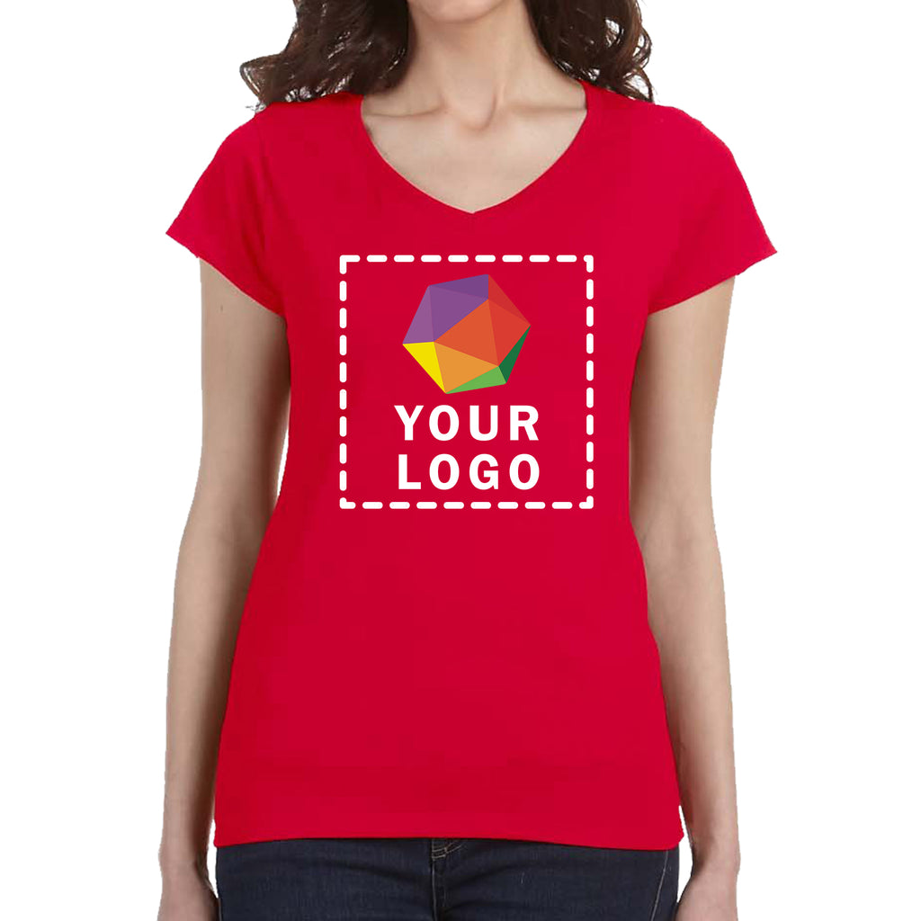 Soft, flattering, and lightweight, this custom Gildan softstyle ladies v-neck tee hugs the feminine silhouette while keeping you comfortable all day. Perfect for corporate events, fundraisers, or casual team wear, it comes in a range of colors and is ready for your custom logo or design. A versatile, stylish essential your group will love.