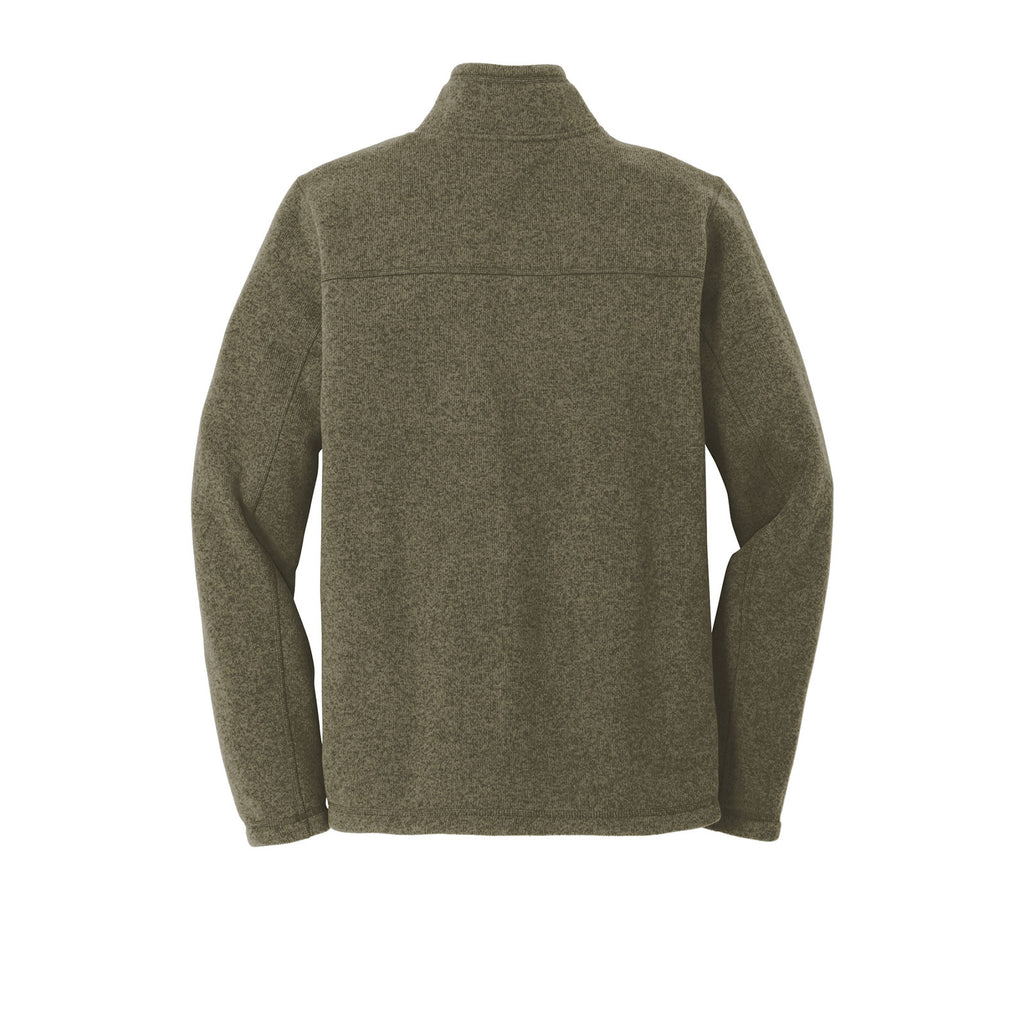 A soft, heathered tone adds casual appeal to the heavyweight, sweater-knit fleece jacket that’s warm, yet breathable, on the trails.